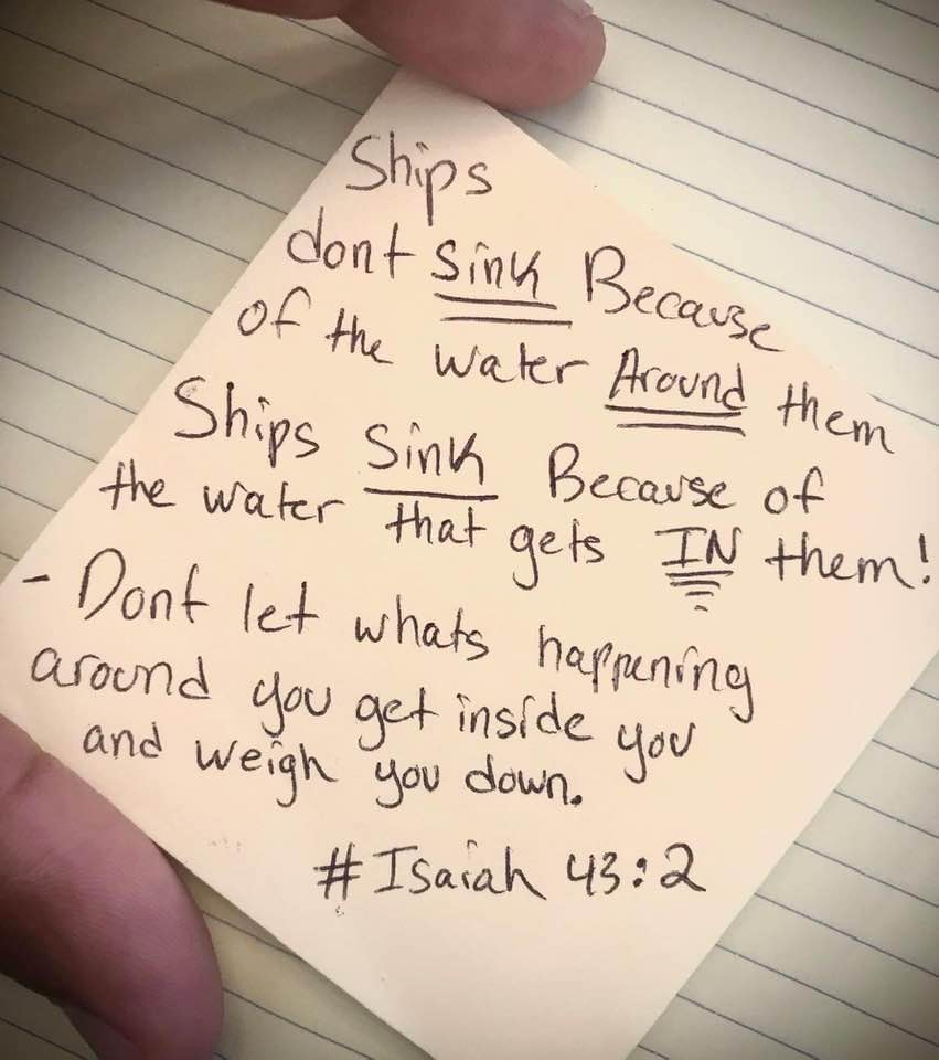 Recently, a  friend posted this note on social media in reference to Isaiah 43:2 as a reminder to put things into perspective: